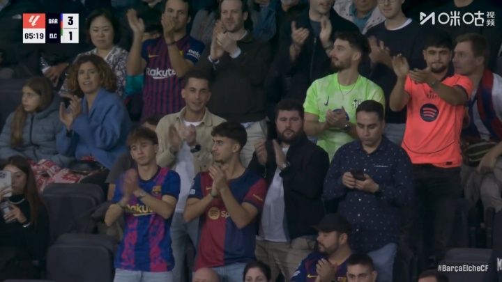 被换下时,本场比赛贡献2个助攻的费尔明得到了巴萨现场球迷的起立鼓掌↓